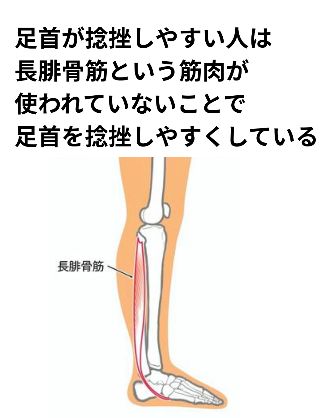 足首の外側にある「長腓骨筋」がサボると、重心が外側に逃げ、足首が常に内側にひっくり返りやすい状態に。
