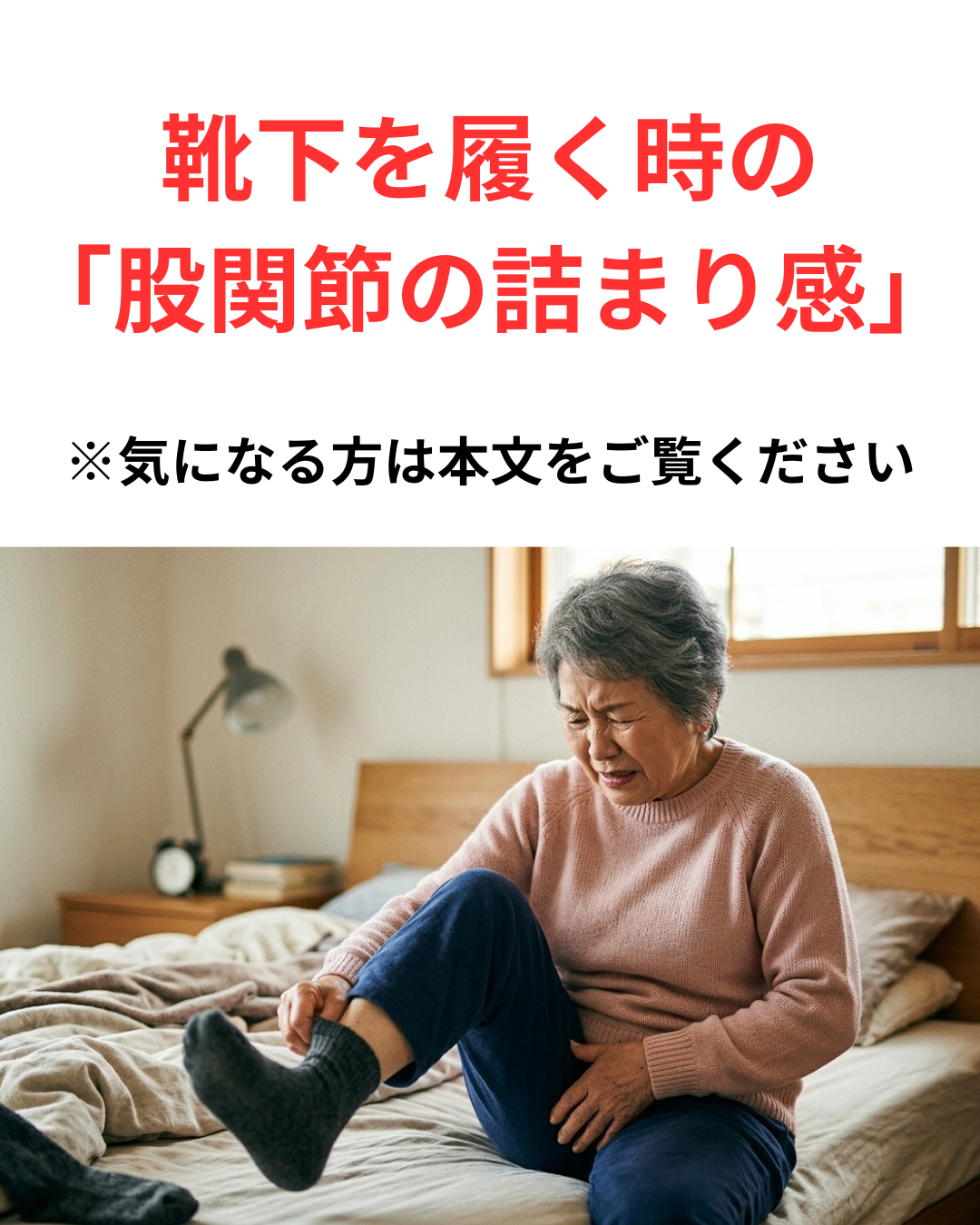 「靴下を履くときに股関節の前が詰まって痛い…」